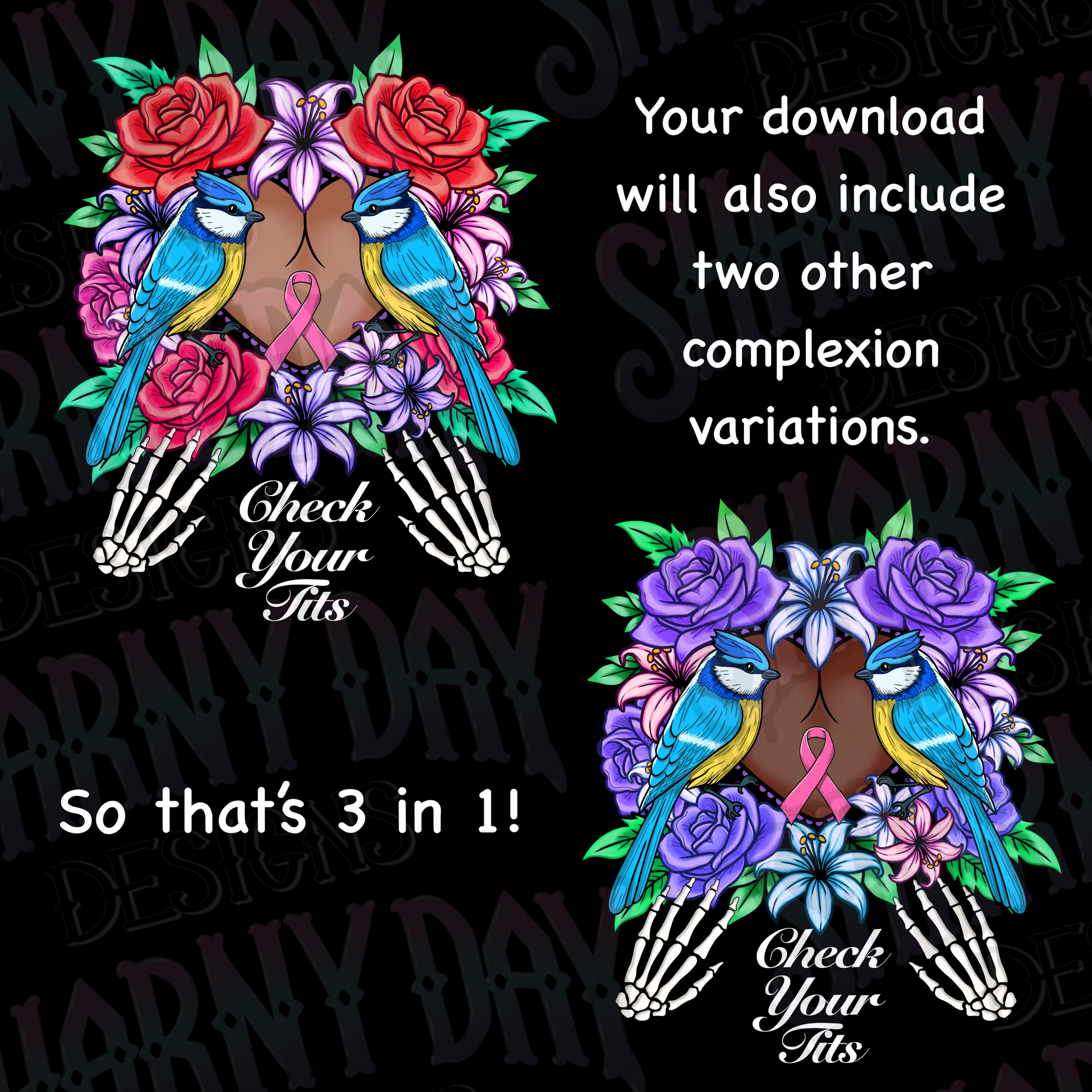 A non-exclusive PNG file (clear background) that you can print on to products such as mugs and t-shirts. Each option will automatically come with two other skin complexion variations!
